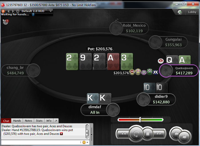 Пока писал этот пост уже AQ<A5, поделил с АJ трипс валетов с другим AJ, проиграл флэш со старшей дамой натсовому флэшу.