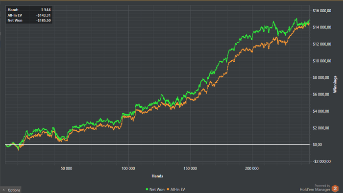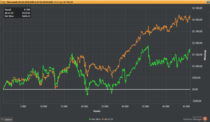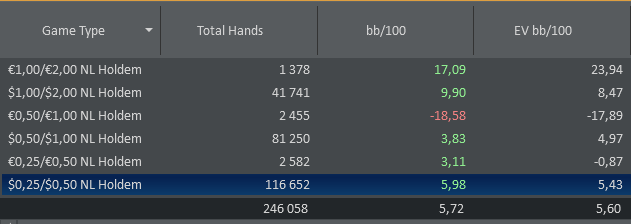 Так как давно не отчитывался, запощу сразу за всё последнее время: из стат видно, что главной ошибкой было играть нл100 евро столы.