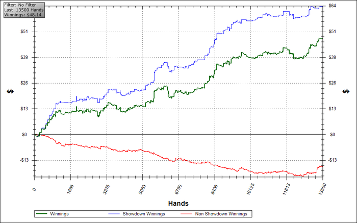 да вроде бы стараюсь. Это все делать. Сейчас откатал первые 1500 рук в фулл ринге. Вроде норм, хотя конечно по сравнению с 6 макс поспокойнее. Правда вроде чаще ререйзят. Хотя может такой отрезок мне попался. Дистанции то нет. По статам 14-8-1.5, тоже вроде не норм. Гляну как там дальше. Откатаю 20к выложу график+статы. Посмотрим что там да как