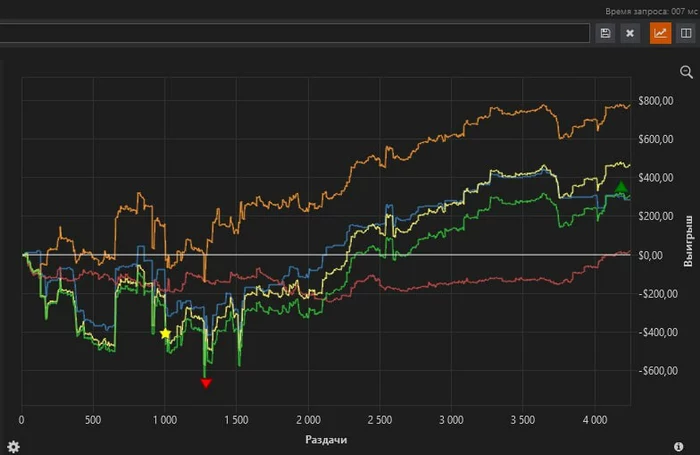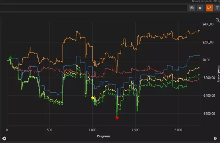 2/3 месяца всё еще чувствовались отголоски стрика последних 2 месяцев. Игра в ноль 70к рук, миллиард 4стритфлеш риверов, выставлений 20/80. Все попытки вернуться на 200 заканчивались стоплоссом в первые 10 минут. десятки таких кулеров, где вообще никак не отскочить