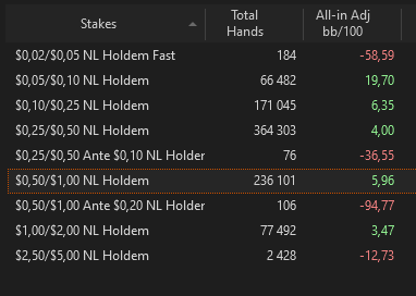 Заметил, что когда у меня полная загрузка 15-17 столов, то ловлю какой-то дзен, и по ощущениям показываю лучшую игру. А вот когда 12 столов и меньше, начинаю придумывать и исполнять там, где ненужно. Придумываю коллы чек-рейзов ривера, там где почти никогда нет блефа. Но отчет по количеству столов будет дальше в годовом отчете