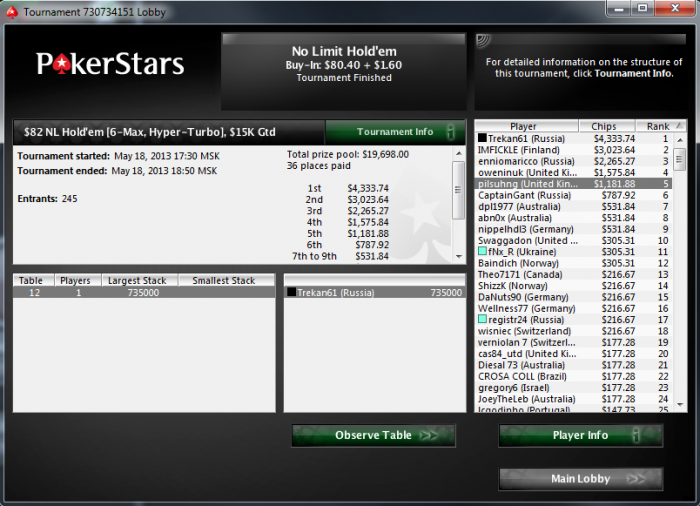 Скорее всего так много сыгранных турниров получается из-за того,что я очень быстро вылетаю и открываю новые.