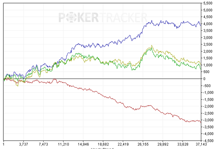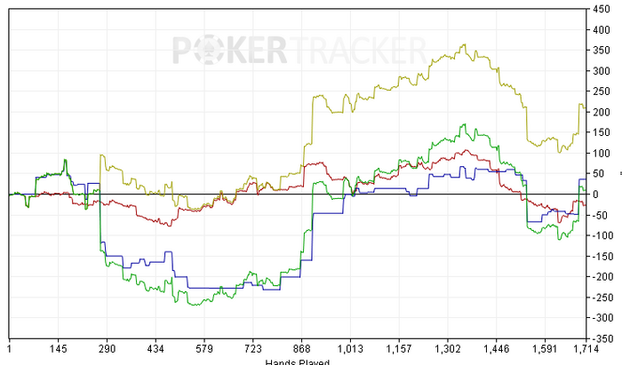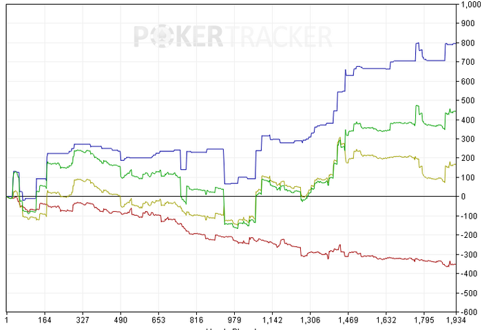 Сегодня в середине сессии, где проигрыш 4баинов, было ощущение, что с открытыми картами играю, зарейзили все блефы, в том числе 5бетами префлоп)))