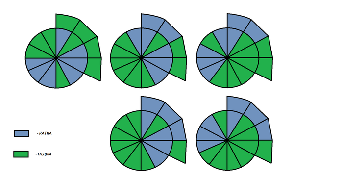 Больной вопрос на самом деле у самого. ну вот сейчас я так пытаюсь В сутках 16 часов, 8 на сон. График стартует с 12 по внутреннему кругу, последние 4 часа добавлены поверх. Тут 3 варианта - когда мне надо уйти куда то с утра, днем и когда мне нужен свободный вечер. Сколько у тебя сессия длиться? Я вот по 3 распланировал, но как то тяжко, особенно если в 3 стола - не выдерживаю, либо просто раньше закрываю, либо надо 1 половину 3 стола катать 2ую 2. Последние 2 варика оказались ниочем, 1 час перед сном мало, да и башка уже не варит нихуя.
