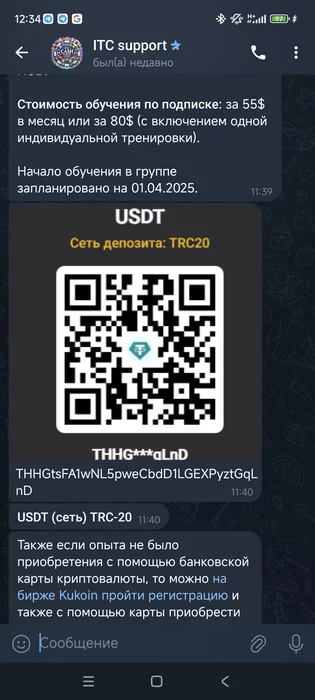 Поступило предложение на обучение в ТГ. Подскажите пожалуйста скам или нет?