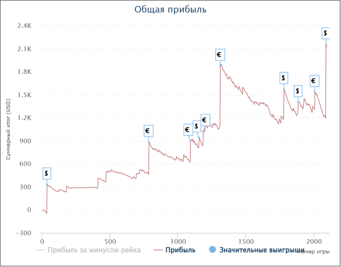 Прямо ярких моментов не было. Я играю утро-день, поэтому больших заносов не вижу, но при этом не бывал и в больших, длительных мейках. Хотя морально готов к любому исходу). За последний год всего один минусовый месяц.