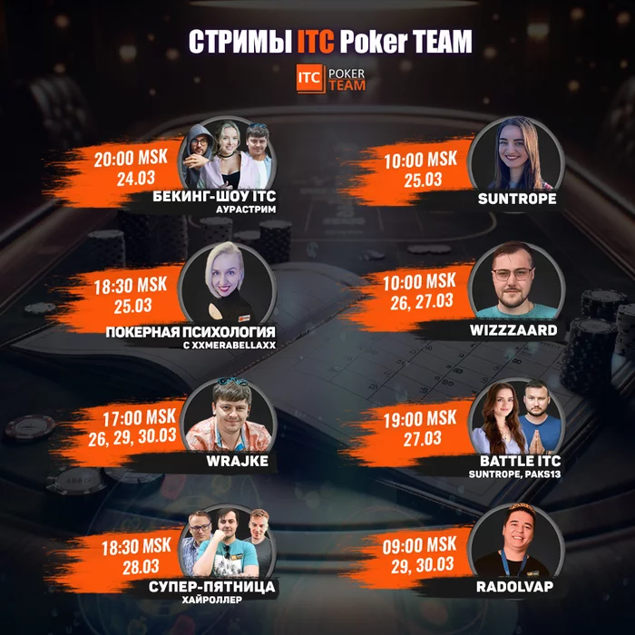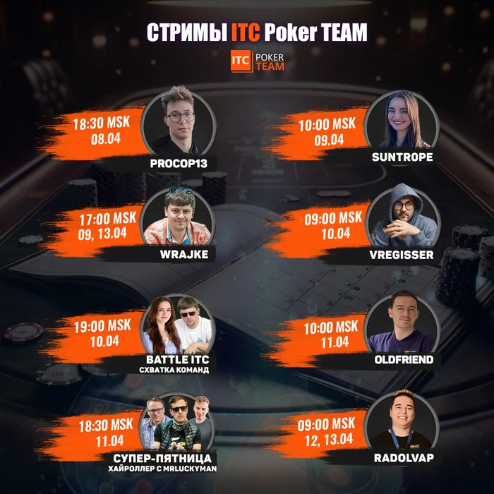 Расписание стримов ITCPokerTEAM на неделю: