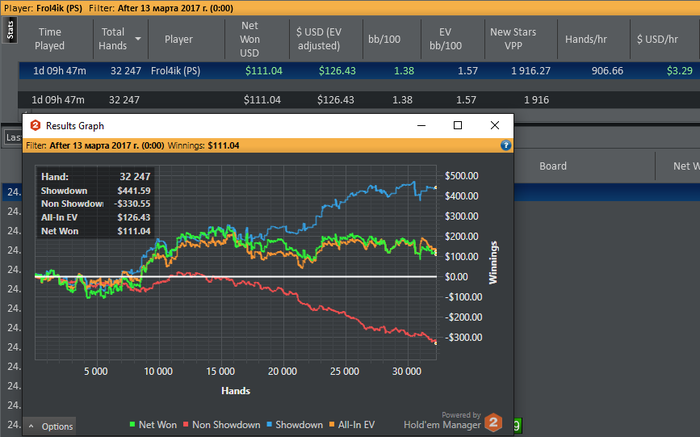А потом я блестяще отыгрываю 1.3к рук и результат общий -0.67 ев бб.