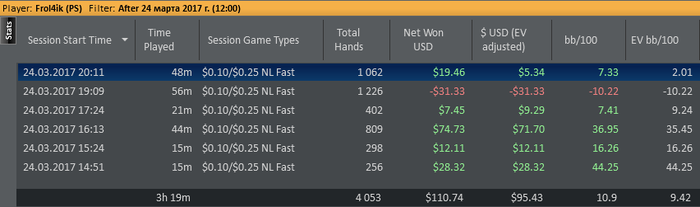21e. Я откатал 3481 руку в 4.46 ев бб. Норм? Да, норм. Но последний час провалил.