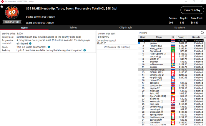 buzcaky @ 30.10.2020 лол второй занос за 3 дня. Седня прям дико перло, при этом на предполуфиналке у меня осталось 2бб после проигранного олына с АК масть против 99 за 200 баксов и чиповский стек, но раскрутился)