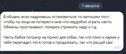 завтра видимо выходной оппонент будет пропивать мои 800 баксов офк)