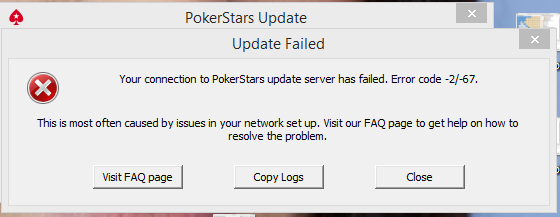 Клиент запускается только через PokerStars.exe, а при запуске через апдейтер какие-то радикальные проблемы возникают.