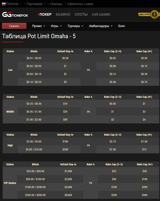 1. Информация о рейке размещена на сайте GGпокерок в разделе Игры, отдельно по каждой дисциплине.