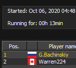 +0,20 = 0,32 Решил, открыть старт турнира за 0,01, поздняя регистрация 30 минут в целом норм, на момент старта 30 участников...