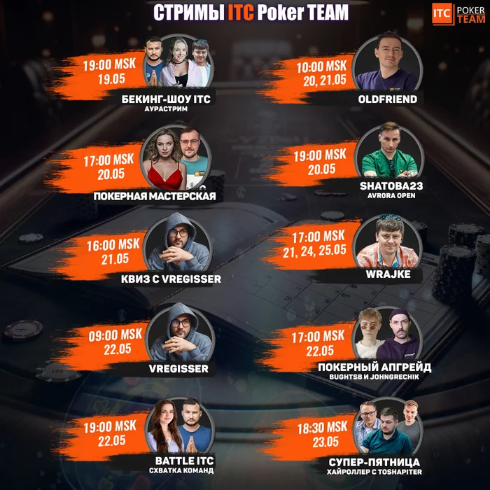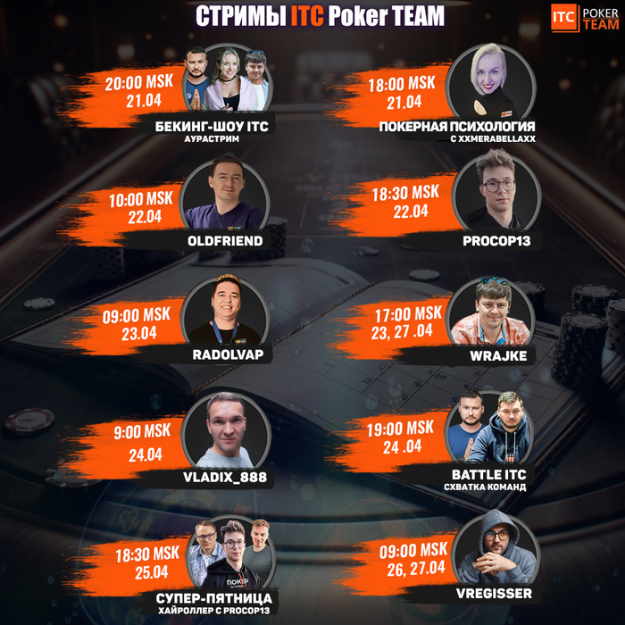 🗓 Расписание стримов ITCPokerTEAM на неделю: