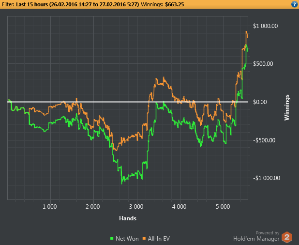 BB showed and won $435.70 ($235.70 net)