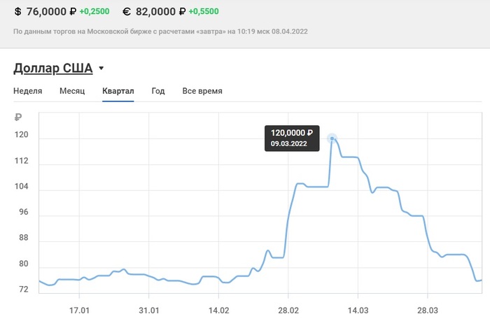 9 марта я обменял пол своего банкролла на рубли. Давайте посмотрим, что было с долларом на тот момент.