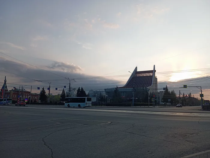 Музыкальный театр, известный как "Трамплин". Много было разговоров, что он портит вид и архитектура сомнительная, но он тоже является визитной карточкой Омска.