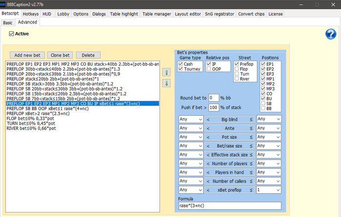 В первых восьми строках беткскрита не никаких дополнительных фильтров, кроме размера стека, по этой причине они срабатывают во всех префлоп ситуациях - и при оупенрейзах, и при 3бетах, и при 4бетах тоже.