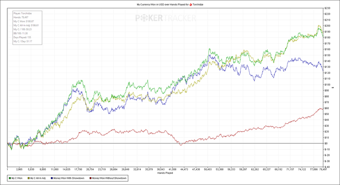 Да и вообще принимать решение основываясь на большом количестве ни чем не подкрепленных допущений не самая лучшая идея. Можно наделать много дорогих ошибок. Хотя мне до сих пор кажется что будь мы чуть глубже, эта рука хорошо подходила бы для блеф рейза ривером.