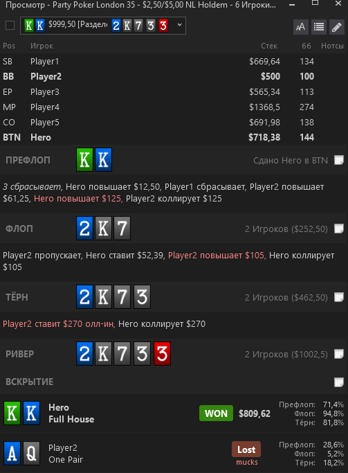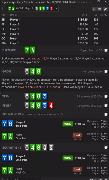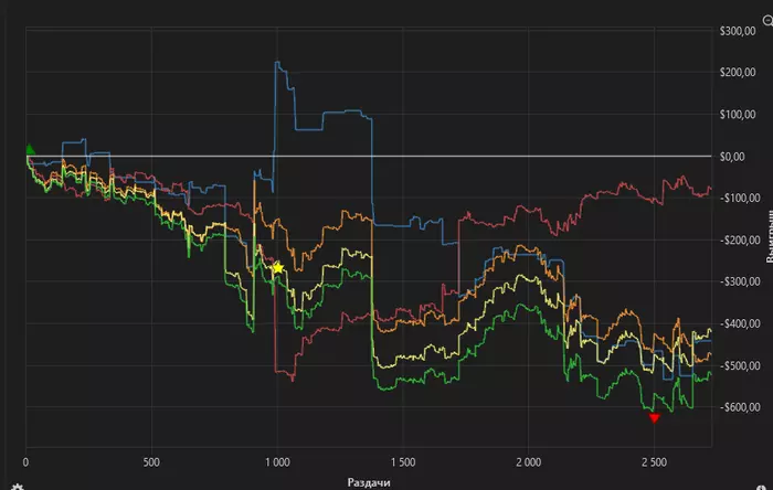 2. Поковырял 500, даже в небольшой плюс получилось. Прикольно, но после нескольких сотен рук на 500, на 200 уже не так "давят" деньги. Начал играть более раскрепощенно (не факт, что более плюсово 😄)
