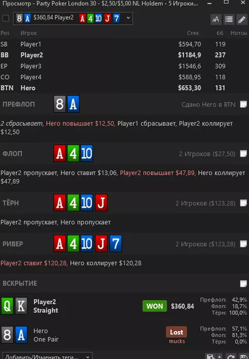 Ещё была одна раздача. Где пати залагал и не дал страховку взять. (А они ради этого момента её на 2 месяца выключали, чтобы починить баг). Как вам игра оппонента, кстати? Помечен спьюшным оверагро регом, но руки чешутся постоянно его в фиша переметить))
