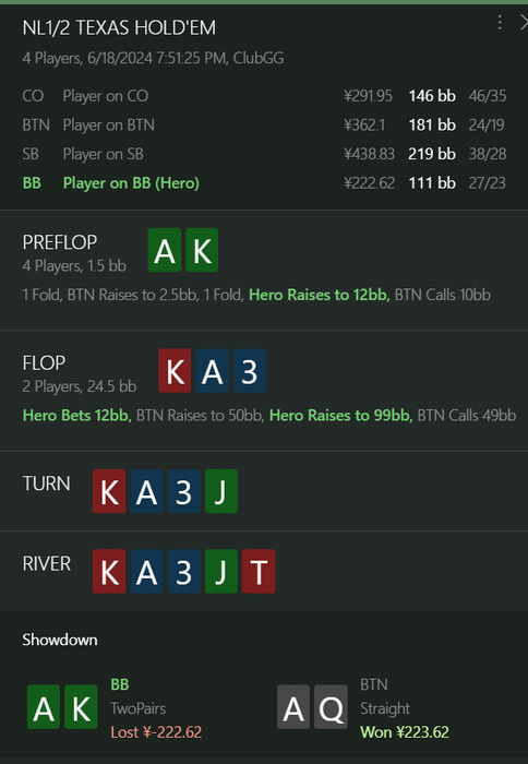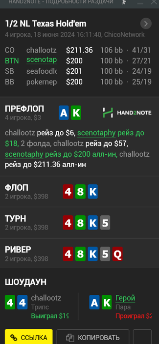 зы, раньше, когда я был юн и не опытен я очень негодовал, когда с АК ловил в 3бет или 4бет поте Q хай флоп. Сейчас, это уже мечта, потому что текущие реалии это J97r.