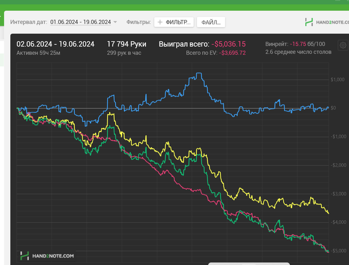 Если бы я три месяца просто чиллил и ни разу бы не открыл столы, у меня было бы больше денег и нервов, лол. Насколько покер хорош, когда дела идут хорошо, настолько же он омерзительно ужасен, когда всё плохо. С другой стороны - все знают фразу, что "худшие стрики еще впереди", и вот я спустя пару лет порядка 250к рук в 0 попал в еще более худший по резам. Надеюсь, следующий меня будет ждать не раньше, чем пару лет)0.