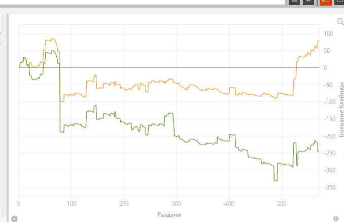 Почему? типа не 400 АБИ? Ну я же график кинул что недодача по ев на 20к рук на 2к фишек (10ев/100). Как по мне - вполне себе стрик. Играя я высокий АФС - ну минус был бы 2-3-4к, вместо 1.2к текущей. Просто АФС мой сгладил стрик