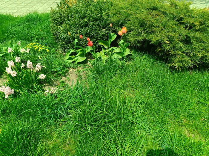 И ещё какие-то желтые красивые растения тоже расцвели, не знаю названия, но красиво, особенно вместе с сакурами