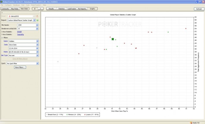 У меня вообще -250бб/1000рук, а Жан говорит не более 130бб. Думаю, здесь все зависит от префлоп диапазонов и играемого лимита. У нита на нл10, который практически не защищает блины и очень узко открывается со всех позиций, само собой будет высокий ВВСФ, и соответственно плюсовая красная.