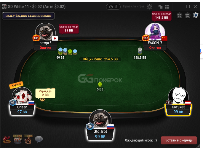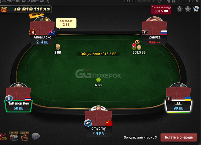 игрок Zan0za играет шортдек 0,02 долл прямо сейчас , играет no look allin по 300-400бб