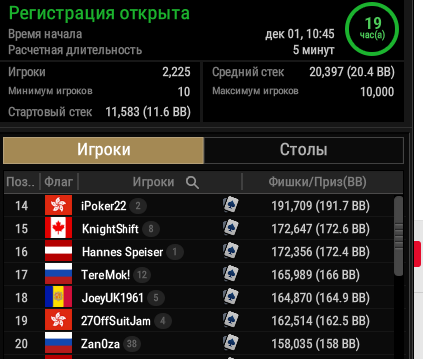 в промотурнире имеет огромный стек, занимает 20ое место по очкам в стеке
