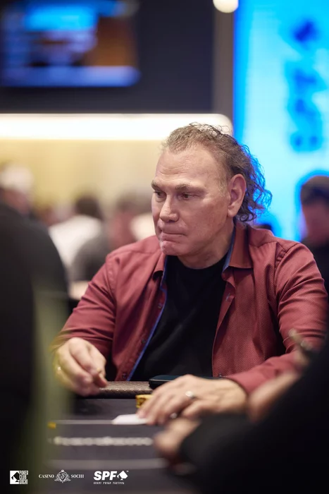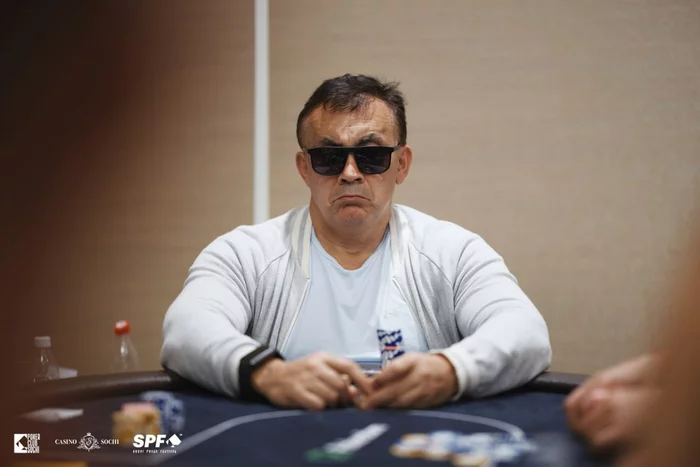 Стол 1. Вадим Кувшинов (21,500) запушил с катоффа , Андрей Андреев (25,000) уравнял на ВВ с . После шоудауна Вадим встал со стула, хотя выставился сильно старше. Как будто что-то чувствовал.