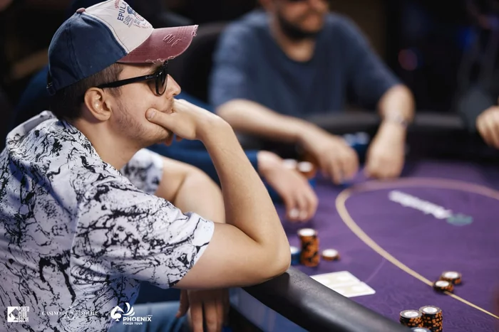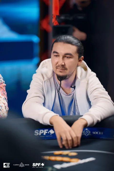 Стол 2. Никита Мажутко (45,000) открылся 3,500 с баттона, чиплидер Дамир Габдуллин защитил ВВ.