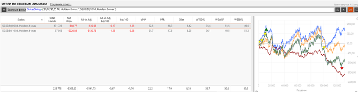 Играл до этого на Покерке, обучался сам по открытым источникам в интернете, в итоге играл около нуля с учетом всех бонусов на данном руме, график прилагаю нижу как было до.
