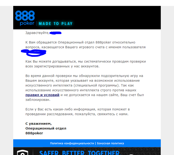 Лично я всё, вчера написал в саппорт чтобы удалили аккаунт, нет смысла играть, они махом это сделали, многие писали и вк, что вип-игрокам закрыли бонусную программу. Я играл и нетурбо саттелиты и турниры, пусть не дорогие, но лучше не играть сейчас на 888. Пусть румыны, бразильские и канадские реги или боты, у которых неуказана страна играют. Даже в бластах сейчас нереально переезжают. Допустим ты остался с одним игроком, и являешься уже победителем, но тайм-аут и аллыны нагло тебя банкротят. Это уже не рум, а лохотрон голимый. Знакомый 200 левел набил, в благодарочку получил три доллара и все. Вот и все 888. Поэтому я вчера окончательно удалился из 888. Если вам нравятся фрихи за копейки, то играйте.