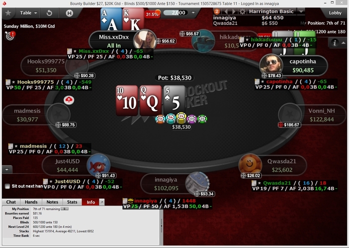 Играю значит я вчера такая турниры) Везде повылетала, остался 1 турнир, баунти за 1.5 бакса или 1.25 ) 9к человек) осталось 200, я чиплидер с огромным перевесом и тут я засыпаю во время перерыва И стыдно и смешно