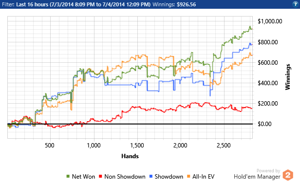 Сегодня решил поиграть только зум100, и первые 2к рук играл только три стола - пока не почувствовал, что Хиро более менее себя держит в руках. Потом добавил 4й стол и посыпались левые действия всякие. Но сдавали лучше, чем Хиро успевал косячить.