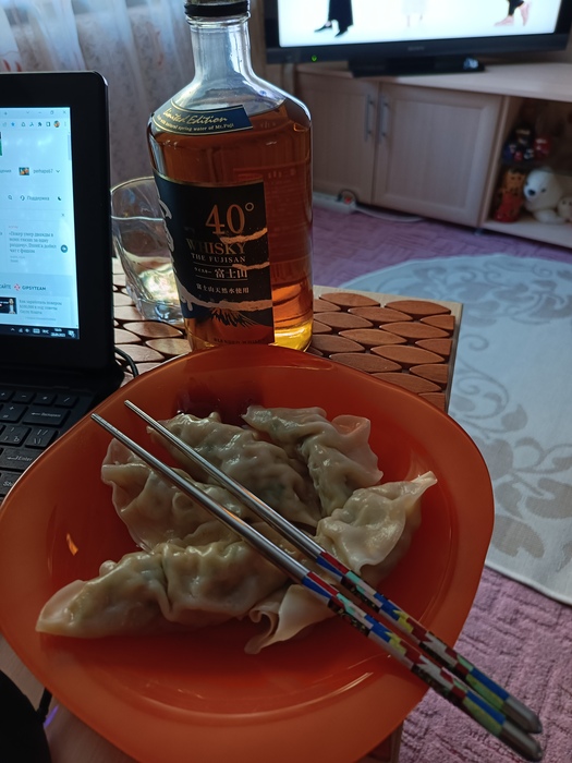Но есть пельмешки гёдза на парУ и капелька японского вискарика.