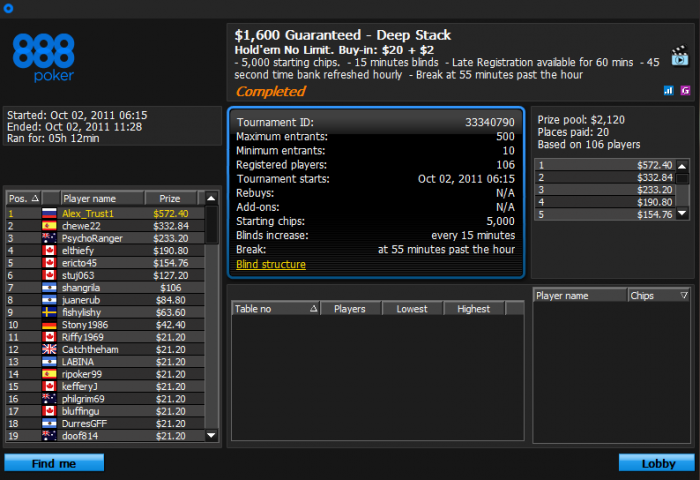 Турнир начался 29.09.2011 22:15:00 MSK [29.09.2011 14:15:00 ВВ]
