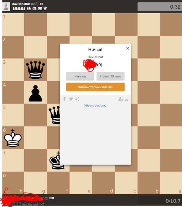 Блин, прикинь , даже если я не знал до этой партии что это "ничья" то мне уже как бы об этом сообщили сразу, ровно в ту же секунду, в табличке после окончания партии.