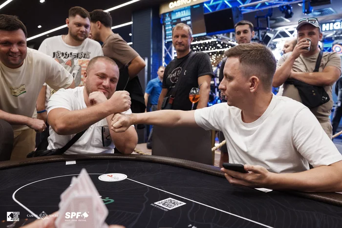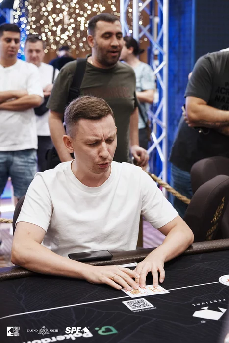 Алексей Савенков мог выбить Сергея Чудопала, но проиграл: < , затем прикрыл олл-ин с от Артура Тихонова с , у которого оставался короткий стек, но поделили на ривере в этой раздаче. Тем не менее у Савенкова в 4-максе был второй стек, причем близкий к чиплидерскому.