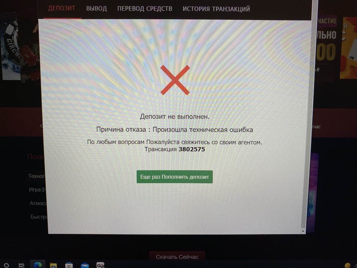 Здравствуйт. скачал клиент, не могу сделать депозит. Нажимаю на кассу всплывает такое окно и все