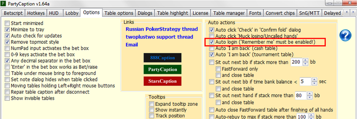 PartyCaption v1.64aСкачать1. Теги [avStackNF], [avStackNF_bb] в HUD / Table panels - средний стек в фишках/бб среди несфолдивших игроков.