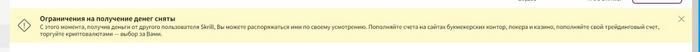 подскажите, такое сообщение в аккаунте скрилла появилось. Это что имеется ввиду? У меня и не было никаких ограничений. Может игровые деньги отменили?