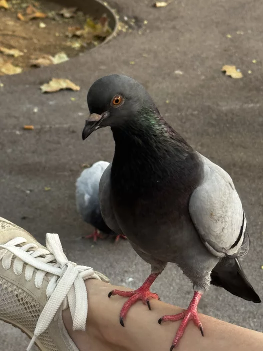 а пока пару фотка конкурента того голубя, теперь этот пиздит у того еду и выгоняет с руки )