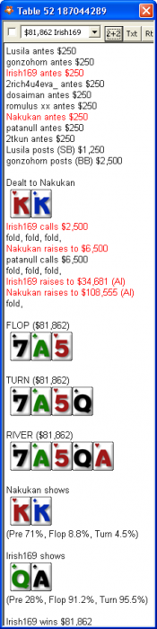 (Pre 82%, Flop 87.2%, Turn 75.0%)