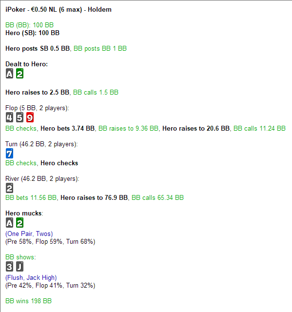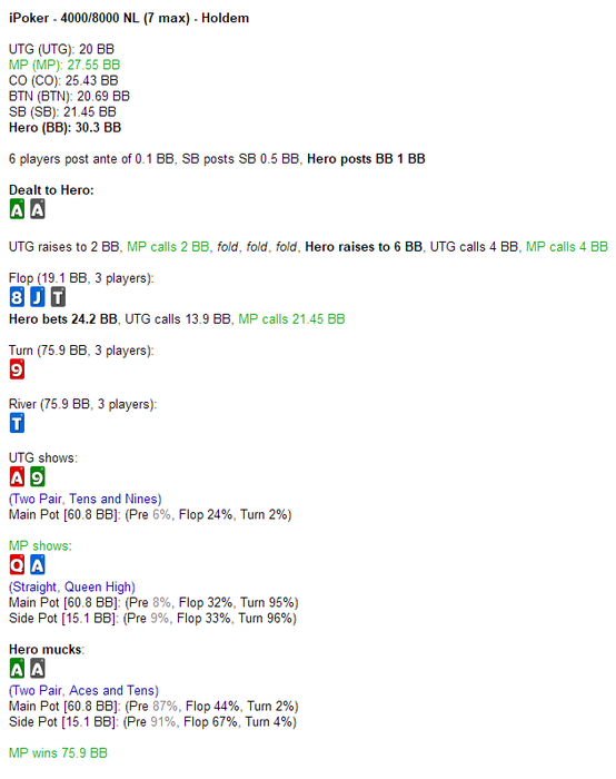 Опять втроем выставились, опять выиграл. За 5минут стек стал больше 1000бб)))
