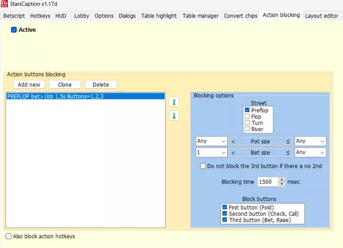 В последних версиях покер клиента стол иногда перестаёт реагировать на кнопки в ХАДе, реализующие клики по столу (в первую очередь Bet with auto bet). Здесь я добавил один фикс, который в существенном количестве случаев должен помочь. Если не помогает, попробуйте также включить Options / Alternative method of a mouse processing in HUD)